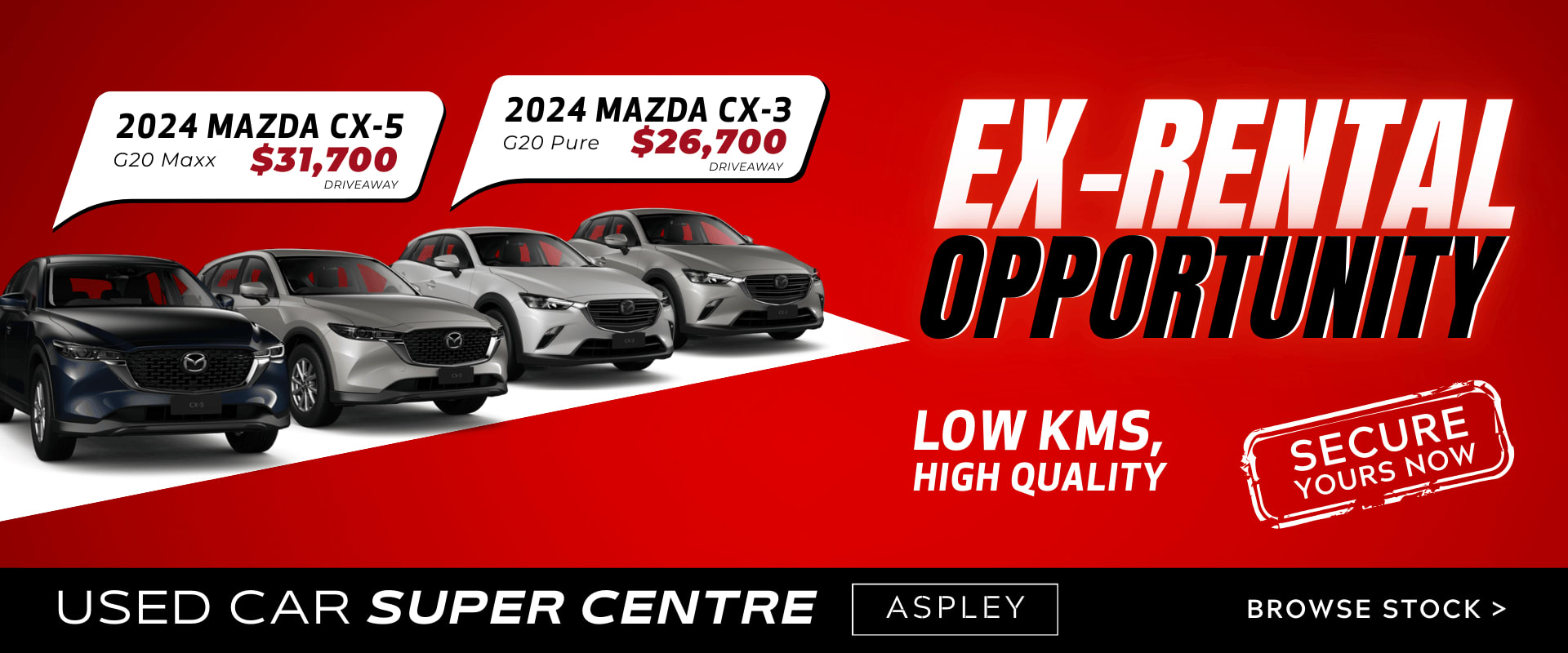 Located inside Aspley Mazda, our Used Car Super Centre offers a huge range of quality pre-owned vehicles from all makes and models - all backed by expert service, fast finance, and unbeatable value. While we’re fully focused on pre-owned vehicles, we’re built on the same customer-first values and high standards that have made Aspley Mazda the #1 Mazda dealership in Australia.